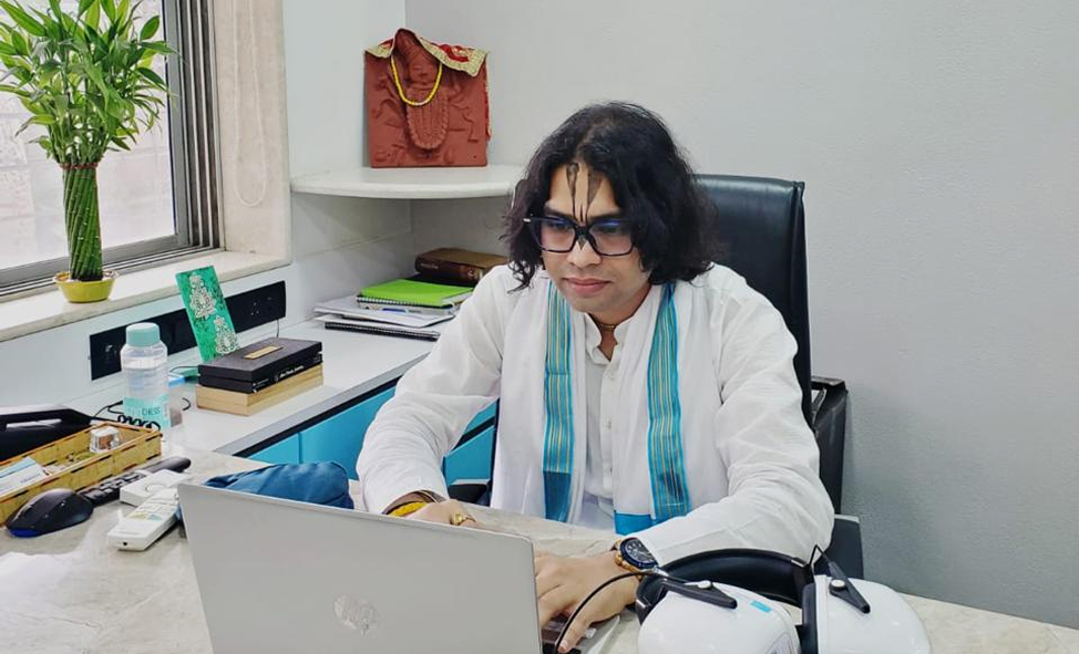 We are blessed to have the guidance of Sri Gauranga Das, a certified consultant with deep expertise in Astrology, Reiki, Face Reading, Vastu, and Pendulum techniques. His profound knowledge across these sacred sciences helps seekers find clarity, healing, and alignment in their lives — illuminating the path toward inner peace and spiritual growth.